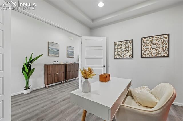 Gorgeous home in Banning Lewis Ranch that impresses from the moment you step through the front door, featuring brand new floors throughout the main level. The welcoming entryway draws you into the living room, where picturesque windows fill the space with abundant natural light. The living room flows seamlessly into the eat-in kitchen, which offers walk-out access to the back deck and fully fenced yard—perfect for indoor-outdoor living. Just below the deck, you’ll find a covered storage or play area, a fire pit, and a spacious side yard ideal for a future dog run or garden. Back inside, the kitchen features a barstool-height center island, brushed stainless steel appliances with a gas range, pantry, and generous counter and cabinet space. Upstairs, a versatile loft sits at the top of the landing, creating the perfect space for a playroom, home office, workout area, or craft zone—whatever you can imagine. The upper level includes three bedrooms, highlighted by the spacious primary suite with an ensuite bath featuring a standalone shower, double vanity, and walk-in closet. Bedrooms two and three share a full bath, and the conveniently located upper-level laundry room completes this floor. The basement level offers additional living space with a large family room, fourth bedroom, and another full bath—ideal for guests or multigenerational living. Located in the highly desirable Banning Lewis Ranch community, this home enjoys access to exceptional amenities including neighborhood schools within walking distance, over 65 acres of parks, trails, and open space for hiking and biking, tennis and pickleball courts, basketball courts, rock climbing, zip lines, pools, splash pad, water park, and a dog park. The recreation center features a fitness facility and hosts classes and events for all ages. During the summer months, enjoy neighborhood concerts, festivals, food trucks, farmers markets, and other community events. This home truly has it all!